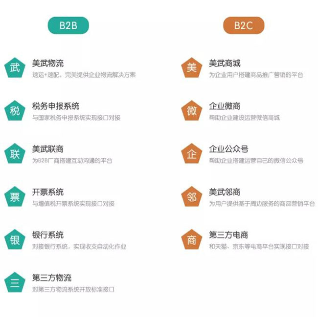 美武系統(tǒng)本著提供B2B+B2C的商業(yè)生態(tài)與閉環(huán)產(chǎn)業(yè)互聯(lián)網(wǎng)模式,為用戶提供全面系統(tǒng)的運營解決方案。